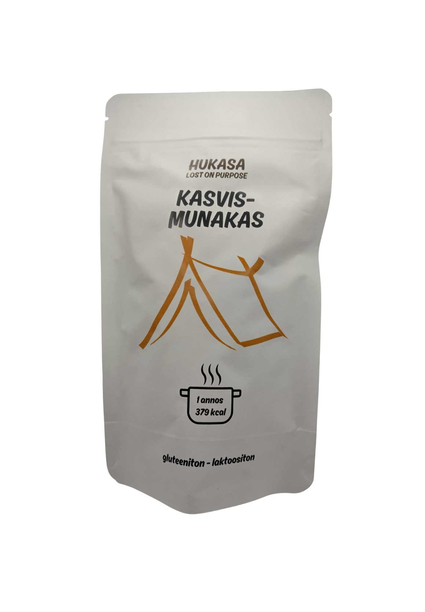 Runsaasti proteiinia sisältävä kasvismunakas mukaan reissuun. Ei pelkoa munien rikkoutumisesta. Paista pannulla rasvan kera. Voit tehdä myös kokkeliksi. Pussissa yksi iso annos.