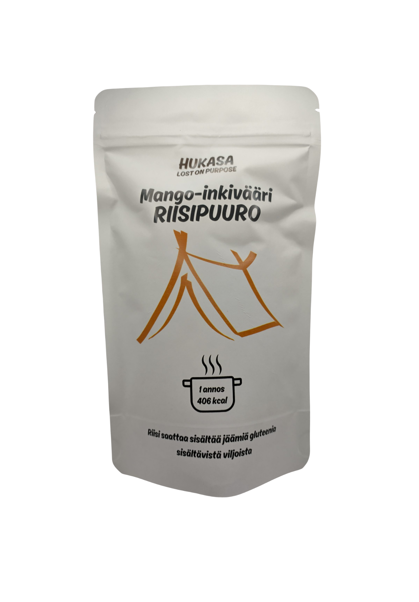 Uudenlainen riisipuuro mukaan retkille. Valmistuu nopeasti ja vaivattomasti. Pussissa yksi isohko annos.