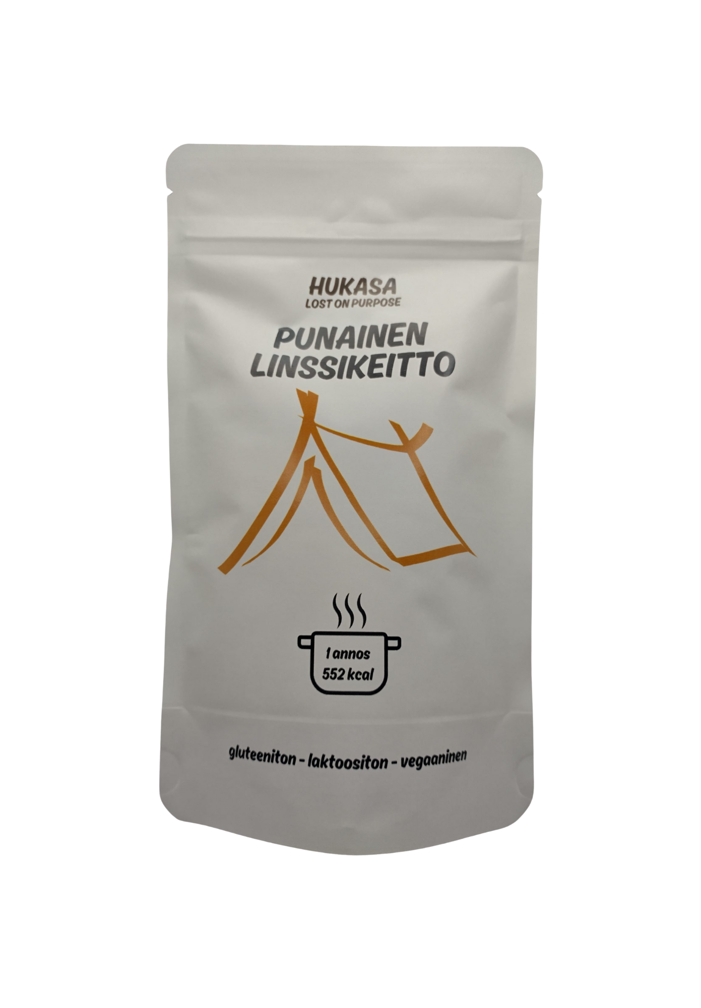 Punaiset linssit, kookosmaito, tomaattisose, mausteet (curry, sipulijauhe, chili, paprika, juustokumina, valkosipuli, mustapippuri, oregano), suola.
